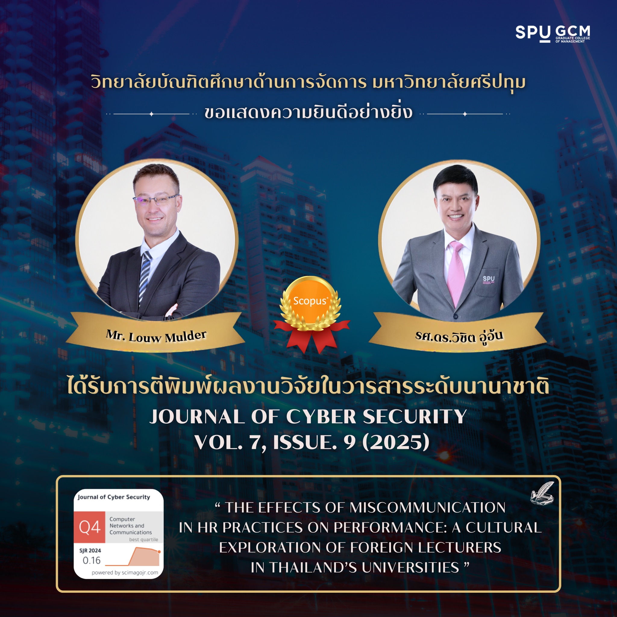 หลักสูตรบริหารธุรกิจดุษฎีบัณฑิตขอแสดงความยินดีกับ Mr. Louw Mulder (DBA รุ่น 16) ที่มีบทความวิจัยได้รับการตีพิมพ์ในวารสารระดับนานาชาติในฐานข้อมูล Scopus ก่อนขึ้นสอบโครงร่างดุษฎีนิพนธ์ (สอบ 3 บท)