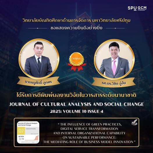 หลักสูตรบริหารธุรกิจดุษฎีบัณฑิตขอแสดงความยินดีกับ นาย ธนูศักดิ์ ลูกศร (DBA รุ่น 15) ที่มีบทความวิจัยได้รับการตีพิมพ์ในวารสารระดับนานาชาติในฐานข้อมูล Scopus ก่อนขึ้นสอบป้องกันดุษฎีนิพนธ์ (สอบ 5 บท)